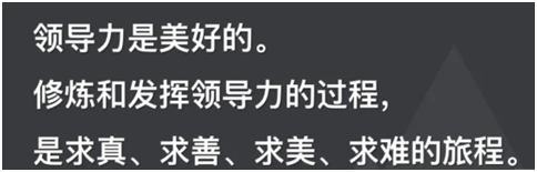 领导力是一门每人都要学的学问,也是一门每人都能学的学问,正是这段领导力的修炼之旅,让我们渡过平庸,驶向卓越!